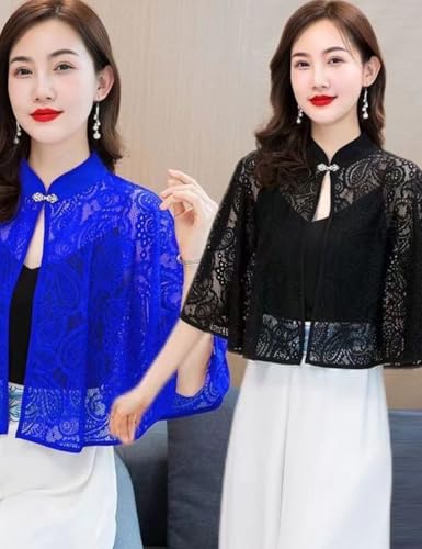 • Feature : Stand Collar, Pearl Button, Long Sleeves, Cropped Length, Lace floral Cardigan Shawl