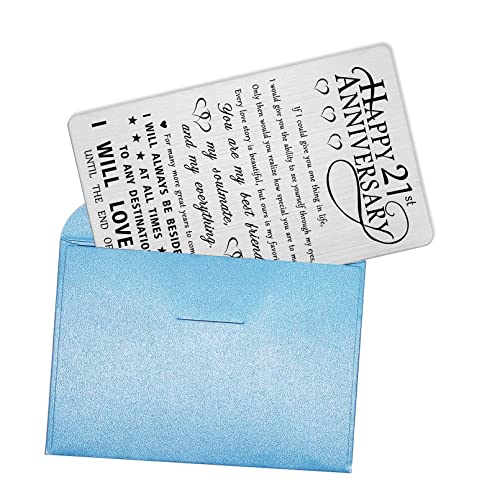 HOT ! Alotozo 21st Anniversary Lovely Gifts for Him Husband Her, Happy 21 Year Wedding Anniversary Engraved Wallet Card Gift for Wife Men