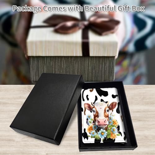 HOT ! Credit Card Holder PU Leather Trifold Pop Up Card Slot Wallet, with RFID Blocking & Magnetic Close Credit Cards Cash Wallets, Slim Pocket Credit Card Holder for Women Men, Cute Cow