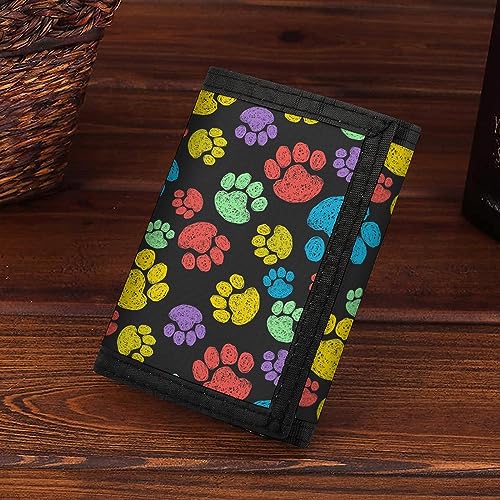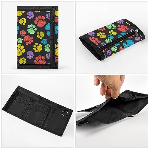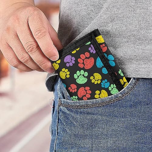 Colorful Dog Paw Print Trifold Wallet Front Pocket Credit Card Holder with Coin Purse Travel for Men Women 1