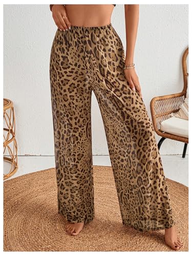MakeMeChic Women's Leopard Print Pants Elastic Waist Lounge Pants Wide Leg Loose Long Pajama Pants 6
