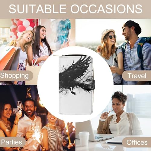 HOT ! Smooth Black Crow Raven Bird Grey PU Leather Wallet, Women Men Reusable Multi-Functional Wallets Waterproof with Snap and Zipper, Large Capacity Wallet