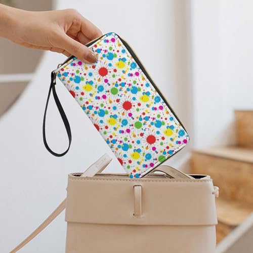 HOT ! Mens High Capacity Water-resistant Wallet, Secure and Durable, Perfect for Travel, Paint Splatter Colorful