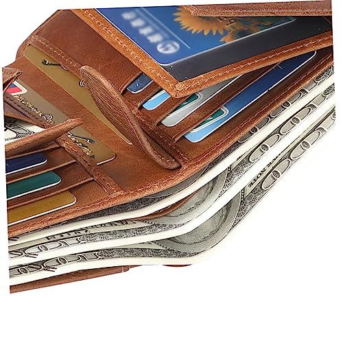 Beaupretty Rfid Blocking Vintage Genuine Leather Wallet for Men Multifunctional Multi Card Holder Coin Purse Portable Clutch with Magnetic Protection Light Brown Stylish Wallet for Office and 6