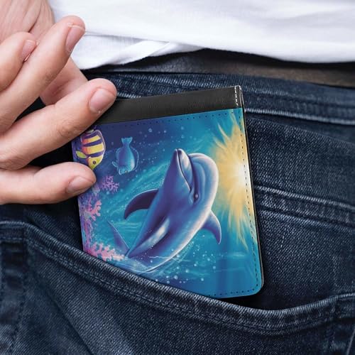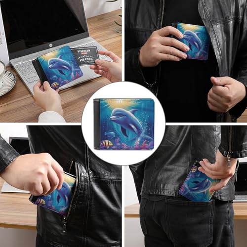 HOT ! Men's Leather Wallet Bifold Wallet for Men Cute Dolphin Slim Wallet with Multiple Card Classic Passcase Mens Card Holder