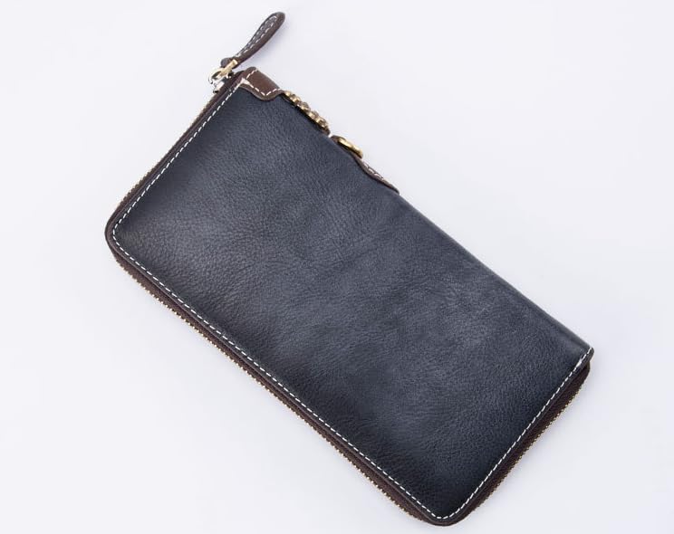 • [Genuine Leather Material] Made from high-quality vintage-style genuine leather this long zipper wallet features a durable construction that develops character over time with a professional appearance suitable for business use