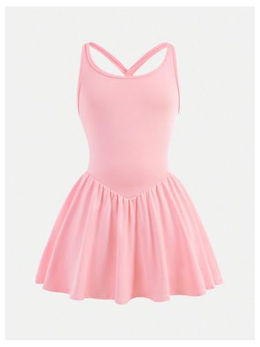 Girl's Tennis Golf Sport Dress with Built in Shorts Criss Cross Racerback Workout Athletic Dresses 1