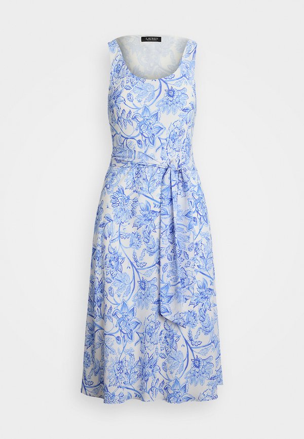 HOT ! Floral Belted Crepe Sleeveless Dress - Day dress