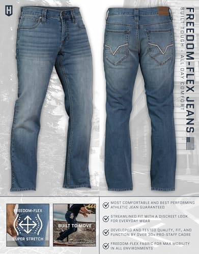 • QUALITY CONSTRUCTION: Freedom flex denim fabric provides superior fit, maximum mobility, and comfort mixed with field tested durability, Durable denim fabric with traditional 5-pocket styling, reinforced stitching, and sturdy metal hardware