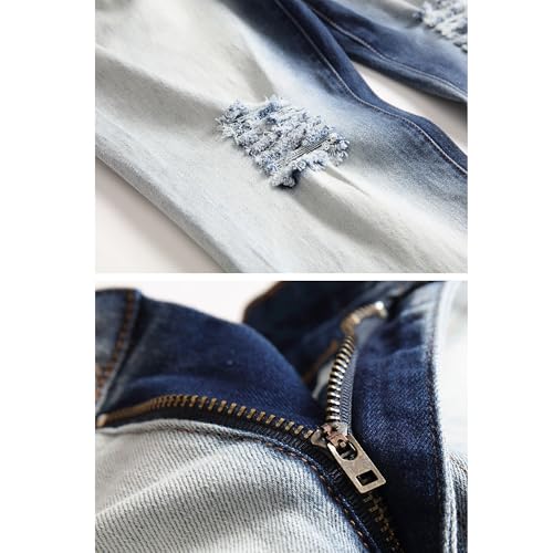 DGHM-JLMY Mens Ripped Jeans Fashion Washed Straight Fit Slim Jeans Distressed Destroyed Comfort Flex Waist Pants 4