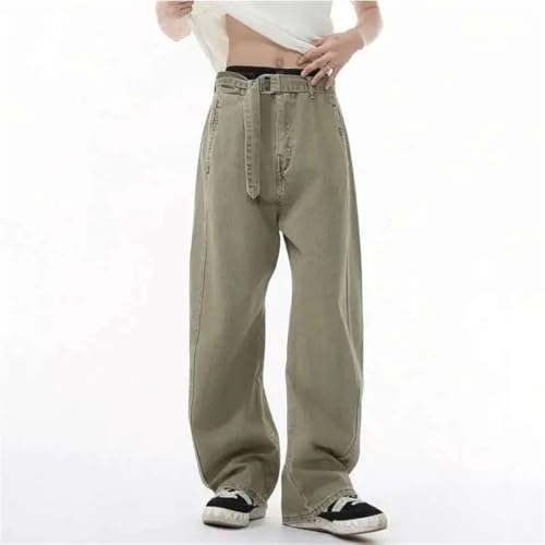HOT ! Men's Jeans Straight Leg Design Korean Handsome Solid Color Belt Loose Denim Pants