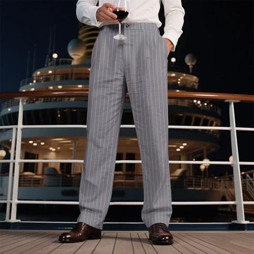 • DESIGN: This men's button down linen pants are designed with side pockets, suitable for spring and summer linen pants, striped pattern is simple and fashionable.