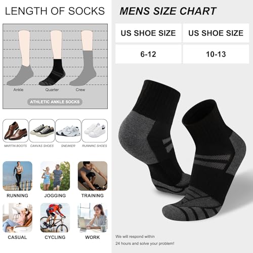 • [CUSHIONED QUARTER SOCKS MEN]:The bottom comes with cushion to reduce impact and provide greater comfort during running or exercise.These ankle socks fit US men's shoe size 6-12, mens socks size 10-13.