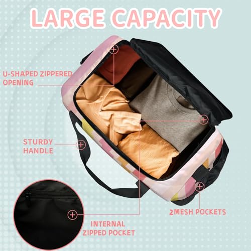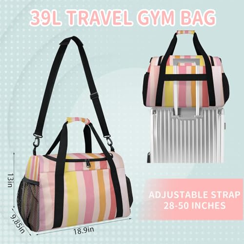 Stripes Pink Yellow Travel Duffel Bag Weekender Overnight Bags for Women Men Foldable Waterproof Tote Bag with Trolley Sleeve 7