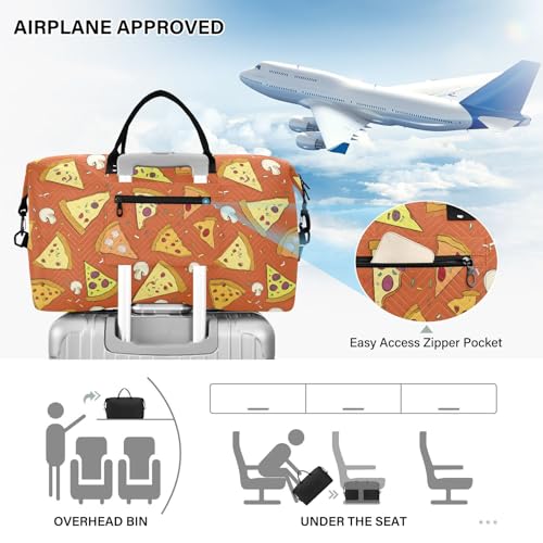 HOT ! Orange Pizza Mushroom Large Travel Duffle Bag Weekender Overnight Bags Gym Yoga Bag for Women Men with Toiletry Bag