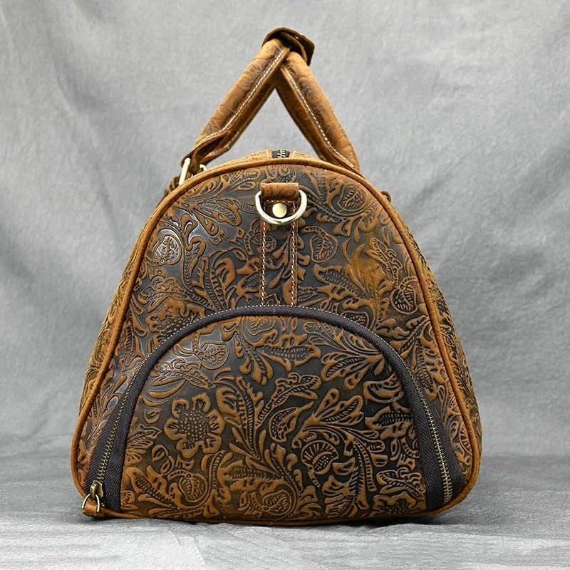 More information about Male Weekend Handbag Embossed Design Leather Men's Travel Bag Vintage Large Capacity Women Luggage Duffel Bags