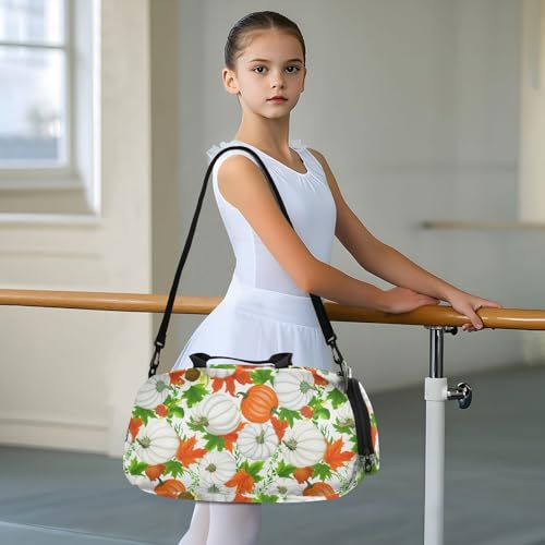 Pumpkin White Kids Travel Duffel Bag for Boys Girls Overnight Weekend Tote Bag with Shoes Compartment for Dance Gym Sports 5