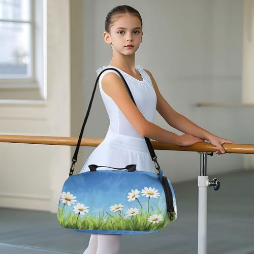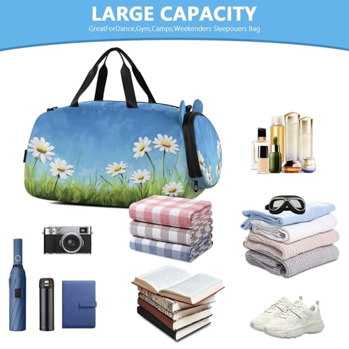 Green Grass Flowers Kids Travel Duffel Bag for Boys Girls Overnight Weekend Tote Bag with Shoes Compartment for Dance Gym Sports 5