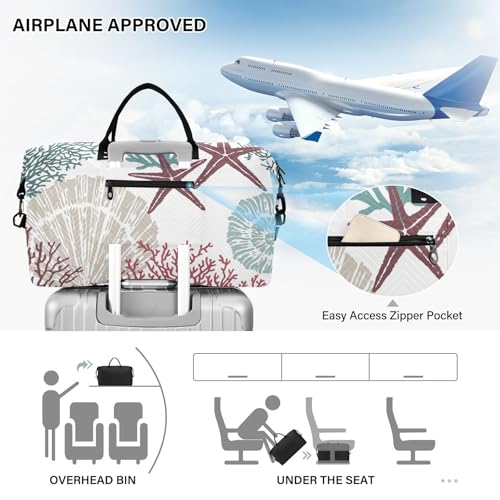 Sea Shells Stars Coral Pattern Duffle Bags for Women Men Waterproof Weekender Overnight Bags Hospital Bag Large Tote Bag with Toiletry Bag for Yoga Gym Travel Sport Hospital 7