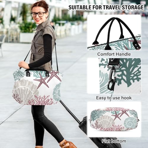 Sea Shells Stars Coral Pattern Duffle Bags for Women Men Waterproof Weekender Overnight Bags Hospital Bag Large Tote Bag with Toiletry Bag for Yoga Gym Travel Sport Hospital 5