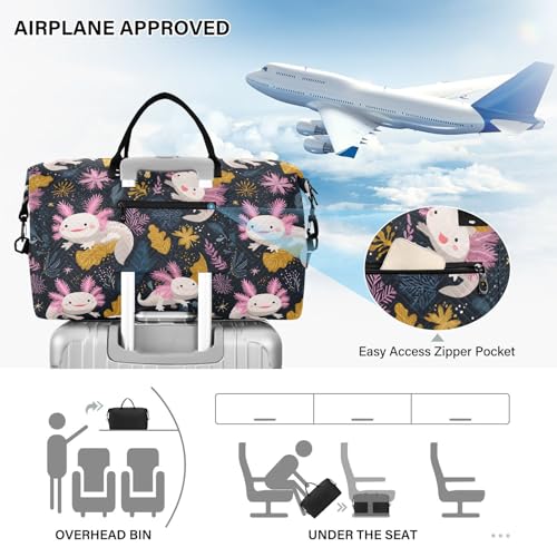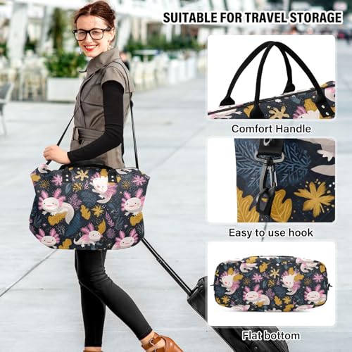 HOT ! Funny Axolotl Leaf Blossom Large Travel Duffle Bag Weekender Overnight Bags Gym Yoga Bag for Women Men with Toiletry Bag