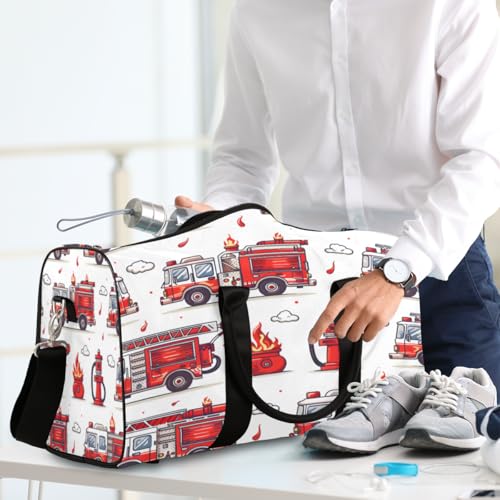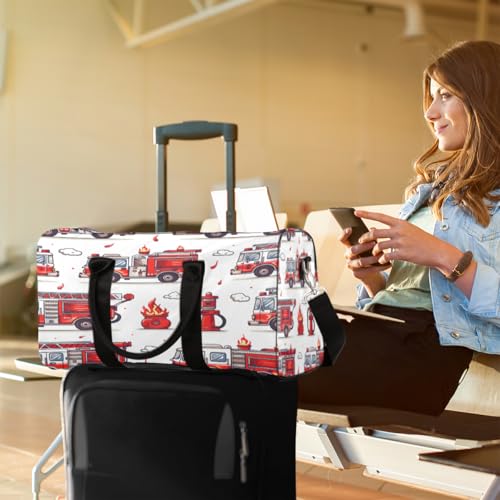 HOT ! Fire Truck Travel Duffle Bag, Sports Gym Bags for Women Men, Carry On Weekender Overnight Bag, Transportation Workout Hospital Airplane Trips Bag