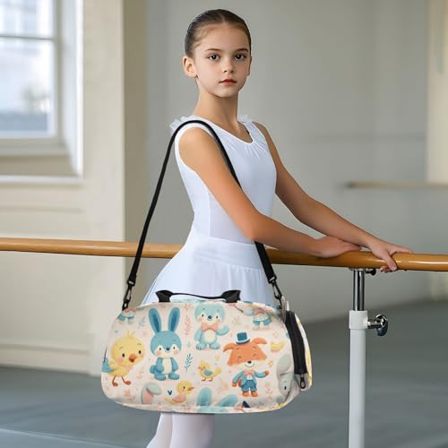 Cute Animals Duffle Bag for Girl, Sports Duffle Gym Bags with Shoe Compartment, Personalized Overnight Bag Travel Weekender for Kids 6