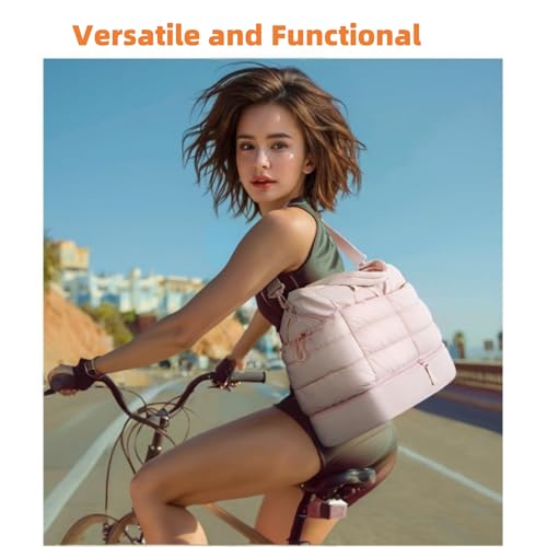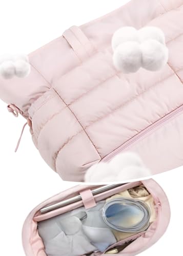 HOT ! Tote Bag for Women, Puffer Bag and Work Bags with Zipper for Travel, Daily, School, Quilted Nurse Shoulder (Beige)
