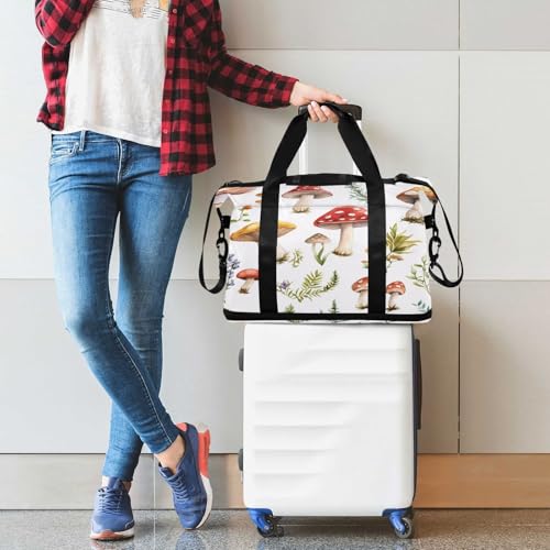 HOT ! Cute Mushroom Gym Bag for Women Sport Travel Duffel Bag Shoulder Weekender Overnight Bags with Wet Pocket & Shoe Compartment