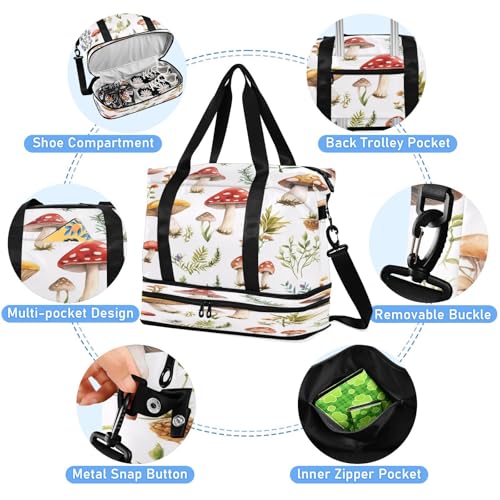 Cute Mushroom Gym Bag for Women Sport Travel Duffel Bag Shoulder Weekender Overnight Bags with Wet Pocket & Shoe Compartment 4