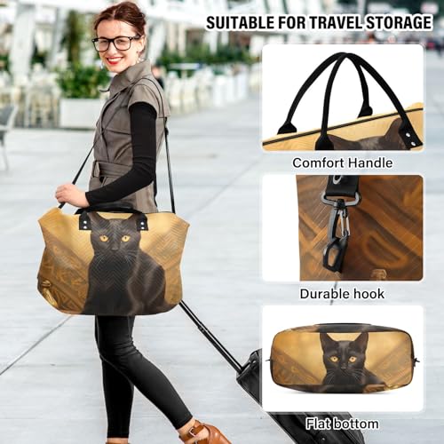 HOT ! Large Travel Duffel Bag, Pharaoh Black Cat Sports Tote Gym Bag, Shoulder Weekender Overnight Bag for Women Men, Carry On Luggage with Toiletry Bags