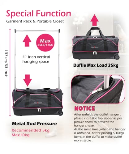 More information about Dance Bag With Garment Rack,Dance Costumes Rolling Garment Bags For Travel,Garment Duffle Bag For Dance Competition, Wheeled Drop-Bottom Upright Luggage Closet Suitcase (28inch-Pink-L)