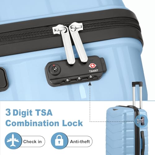 HOT ! V-Striped 4-Piece Luggage Set with PP Handbag and Trolley Cases - Sky Blue,4 x PP Trolley Cases (14in, 20in, 24in, 28in)
