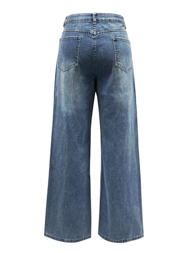 • Trendy Y2K Vintage Style: EMMIOL vintage boyfriend jeans for women with distressed design feature a fasion, loose fit. These wide leg jeans woman with zip fly and button closure,classic five-pocket design is perfect for creating Y2K vintage, hip hop, street styling.