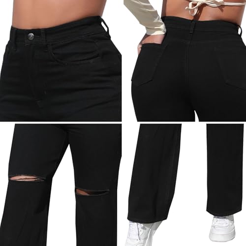 More information about LONGBIDA Womens High Waist Ripped Straight Wide Leg Baggy Jeans Y2k Boyfriend Distressed Loose Denim Pants