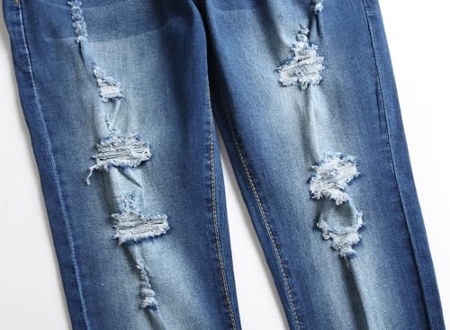 LONGBIDA Women's Stretch Ripped Jeans Skinny Distressed Destroyed Cuffed Denim Pants 4