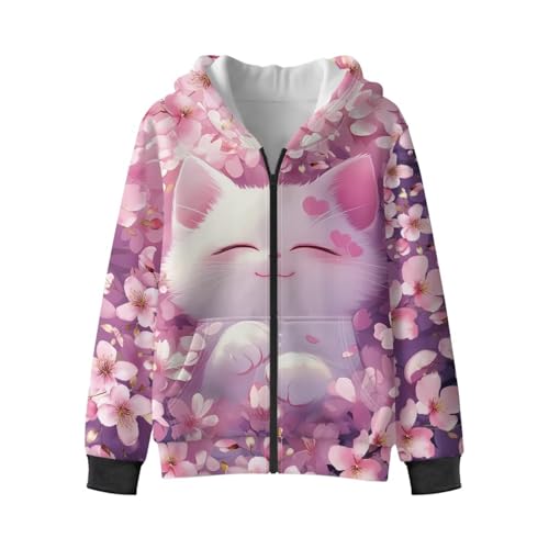HOT ! Girls Zip Up Fleece Hoodie 3D Printed Hooded Sweatshirt Hoody Coat with Pocket 6-16 Years