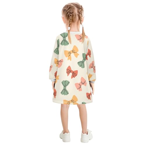 Retro Bows Girls Dresses Long Sleeve Sweatshirt Dress for Girls Winter Toddler Casual A Line Dresses Size 2-8T 4