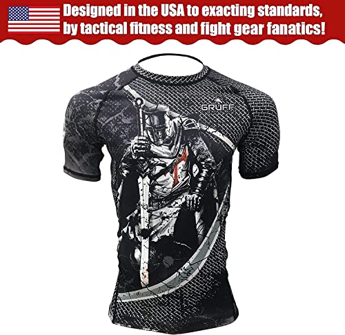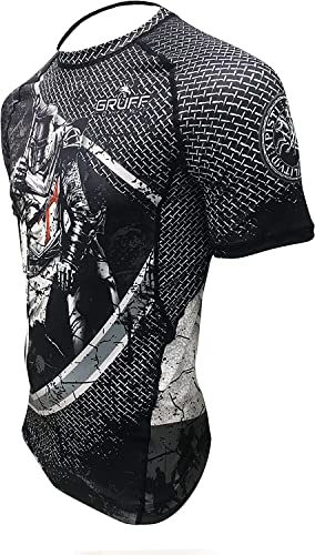 • [PREMIUM QUALITY] Gruff Combat bjj rash guard is manufactured from finest quality 4-way stretch fabric with 85% Polyester, 15% Spandex. It has a compression form fit with finest flat-lock stitching that conforms to fit the body's curves. Compression wear supports muscles leading to superior performance.