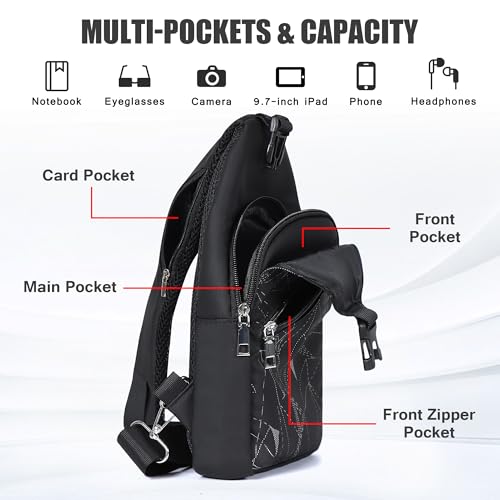 Geestock Sling Bag Backpack for Men & Women, Crossbody Backpack Shoulder Bag Waterproof Chest Bag for Daypack Travel Hiking (Black) 6