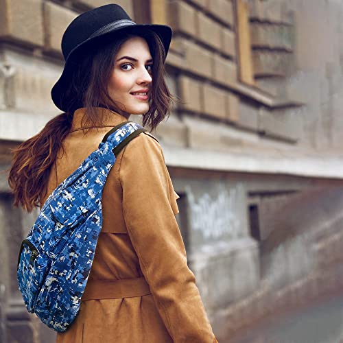 Rucksack Pickleball Bag, Anti-Theft Crossbody Sling, USB Charging Connector Port, Backpack, Blue Camo 1