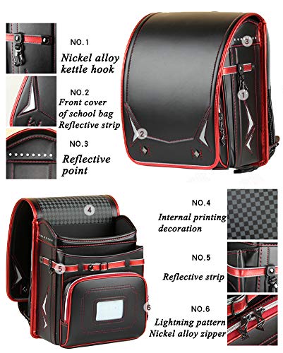 randoseru Embroidery pattern luxury bags japanese lighten up backpack PU leather【lightning pattern Blue-brown】 4