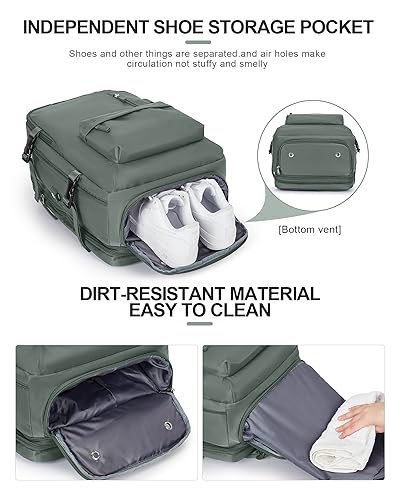 Carry on Backpack,Travel Backpack for Women Men Airline Approved Personal Item Size Hiking Gym Backpack Weekender Casual Daypack Backpack Waterproof Bag with Shoe Compartment, Green Extension 4