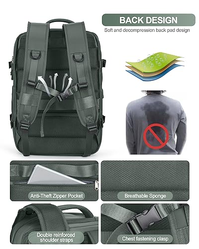 Carry on Backpack,Travel Backpack for Women Men Airline Approved Personal Item Size Hiking Gym Backpack Weekender Casual Daypack Backpack Waterproof Bag with Shoe Compartment, Green Extension 6