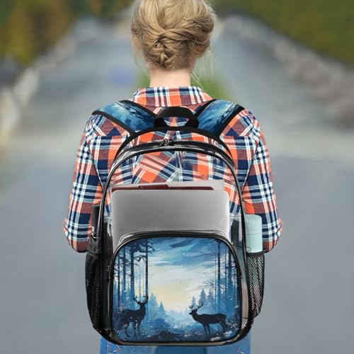 HOT ! Forest Elk Animal Clear Backpack, Stadium Backpack for Women Men Adult Concert Festival Work Daily Travel