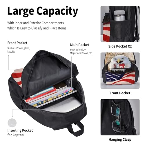 • Durable Oxford Fabric: Crafted From Prime, Durable Oxford Fabric, This Patriotic Bald Eagle With American Flag Set Is Built To Last, Providing You With A Long-Lasting, Sturdy Solution For Your Everyday Carrying Needs.