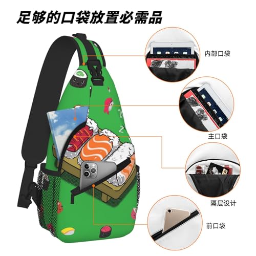 More information about Cross Chest Bag Diagonally-Sleeping Sushi Print Durable Hiking Daypacks With Large Capacity For Women Men
