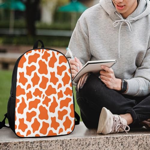 Orange Cow Skin Pattern Backpack Simple Leisure Travel Backpack Outgoing Daypack 17 Inch 4