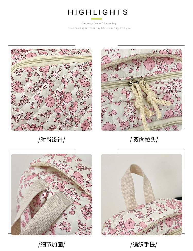Floral print backpack - campus style, feminine, fresh and lovely, travel bag, Korean version, large capacity, suitable for spring outings, also a mommy bag. (Pink) 4