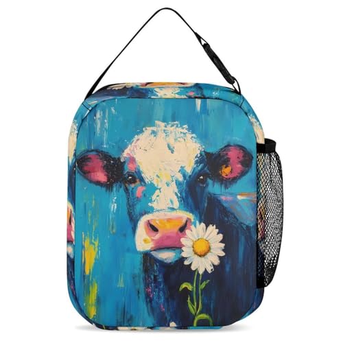 Funny Daisy Cow Painting Printed Backpack with Lunch Box Bag Pencil Case Pouch 3pcs Daypack Set for Women Men 7